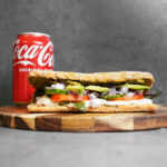 Grøn pesto, tunmousse, avocado, tomat, agurk, rødløg & salatmix.